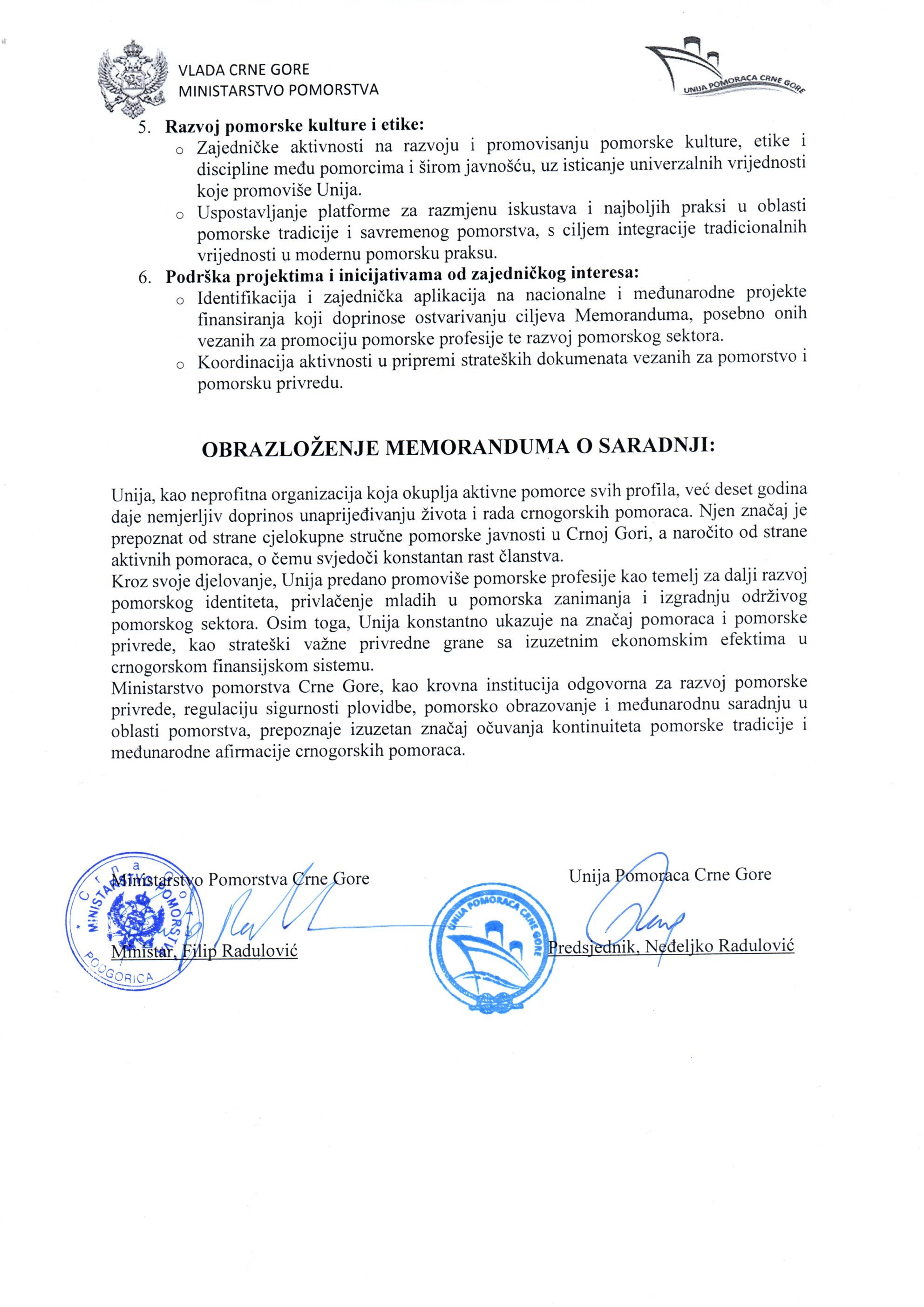 Ministarstvom pomorstva Crne Gore.